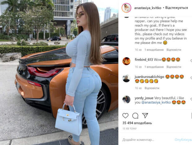 Одежда была настолько тесной, что аппетитные достоинства красотки так и норовили разорвать наряд. Квитко встала таким образом, чтобы поклонники могли рассмотреть все ее прелести. Аппетитная пятая точка заняла внушительное место на фото. Также взгляд приковал огромный бюст модели. Тонкая талия сделала образ звезды незабываемым. В комментариях девушке оставили массу приятных слов. «Насть огонь малышка», «Сейчас она вообще зазнается после таких слов», «Потрясающая дама», «Очень хорошо», «Супер», «Шары впечатляют», «Вы такое невероятно красивое благословение», «Красивая», «Шикарно и элегантно, любовь моя!», «Очень красивая, ты мне нравишься @anastasiya_kvitkо», - пишут пользователи сети. Как известно, Анастасию Квитко благодаря ее необъятным формам прозвали российской версией Ким Кардашьян. Свою карьеру девушка начинала в Москве, но позже поняла, что ее формы больше ценятся за границей. Напомним, что Анастасия Квитко сверкнула упругими "булочками", развернувшись спиной: "Королевская кровь". Как сообщала Politeka, Анастасия Квитко показала "широту души" в кофте с глубоким вырезом: "Надувные шарики". Также Politeka писала, что Анастасия Квитко без белья в слишком тонком платье показала торчащую красоту: "Божественная женщина".