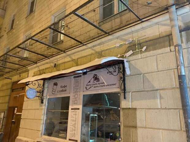Шаурмичная Stalin Doner вновь оказалась в центре внимания — в ночь на субботу заведение разгромили неизвестные молодчики. Об этом нам рассказал владелец заведения Станислав Вольтман. Настоящий налёт в стиле 90-х (разве, что без поджога) на шаурмичную в Коптево произошёл в 4.35 утра. Трое крепких мужчин в капюшонах и масках стали громить вывеску и логотип заведения.