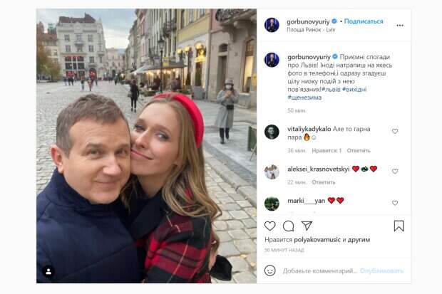 net. Юрий Горбунов решил похвастаться приятным воспоминанием своей поездки во Львов, где они с Катей Осадчей успели прогуляться по Площади Рынок и провести незабываемое время вместе. На фото Катя Осадчая нежно прижалась щекой к своему супругу, показывая, как ей хорошо в компании любящего человека. Телеведущая искренне улыбалась, как и сам Горбунов, который, едва сдерживая приятные эмоции, делал селфи на фоне знаменитой площади старинного города. В этот день Катя Осадчая вместо шляпки надела на голову яркий объемный ободок красного цвета, дополнив им цветовую гамму своего оригинального клетчатого пальто. В то же время Юрий надел сдержанную синюю куртку, поскольку на улице было довольно прохладно. "Приятные воспоминания о Львове! Иногда наткнешься на какое-то фото в телефоне, и сразу вспоминаешь целый ряд событий, с ним связанных!",- описывает свои эмоции Юрий Горбунов. Поклонники телеведущих пришли в восторг от этого архивного снимка и написали, что в паре действительно царит гармония и любовь. "Но это хорошая пара, красивые!", "Такая красивая... И так тебя любит, Юр...", "Прекрасно!!!! Посетите и Тернополь!!!! У нас тоже есть, чем удивить",- пишут фолловеры под публикацией телеведущего, добавляя к комментариям много эмоджи в виде сердец. Напомним, что недавно Юрий Горбунов и Катя Осадчая показали, как вместе готовят семейный ужин на своей кухне. В меню пары была говядина, которую они запекали в новом электрогриле, а телеведущая на своей странице даже поделилась хорошим рецептом. Напомним, счастливый Горбунов решил удивить "беременную" Осадчую на ночь глядя: "Есть шестнадцать вариантов..." Как сообщала Politeka, озорная Осадчая поразила ребяческими развлечениями на улице, в сети ахнули: "Горбунову повезло" Также Politeka писала, что Олег Винник рассказал "беременной" Осадчей, где и с кем провел отпуск, "волчицы" напряглись: "Соскучились?"
