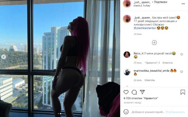 Также она неоднократно заявляла, что не собирается останавливаться на достигнутом и совсем недавно отправилась в Турцию, чтобы в очередной раз лечь под нож пластических хирургов. Покрещук уже откачала лишние жиры, увеличила пятую точку и "нарисовала" кубики на прессе. Теперь результатами она решила похвастаться перед поклонниками. На фото блогерша попозировал стоя возле окна в черных трусиках-бикини и топе, выпятив свою пятую точку. «Как вам мой орех?