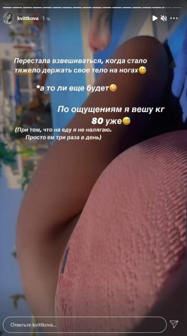 В этот же раз девушка сделала акцент на весе. «Перестала взвешиваться, так как уже тяжело держать тело на ногах, то ли еще будет… По ощущениям, я вешу 80 кг уже… При этом на еду я не налегаю – просто ем три раза в день», - рассказала Даша. Также она отметила, что даже в штаны своего костюма не влезает и пришлось показывать на себе только кофту. Предыдущий пост девушка сопроводила нежным кадром из постели, на котором позировала в простом лифчике без принтов. До этого пост, который разместила беременная победительница Холостяка касался осознания. Осознания счастья, жизни в настоящем и принятия того, что окружает тебя в данный момент. Такая философия счастья многим пришлась по душе. Даша сказала, что обожает способность быть счастливыми абсолютно везде. "Наслаждаться, ценить каждый день и получать максимум удовольствия от того, что мы имеем. Не принимать как должное, а жить с большой благодарность внутри", - написала Даша. Напомним, что "Холостяк" Добрынин вызвал бурю эмоций пикантным фото с беременной женой на отдыхе: "Смотрите, какая..." Как сообщала Politeka беременная жена "Холостяка" Добрынина засветила свое богатство в одном белье, муж не выдержал. Также Politeka писала, что жена "Холостяка" Добрынина страдает от целлюлита и отекших ног, личные фото: "Попрощалась с талией. ..".