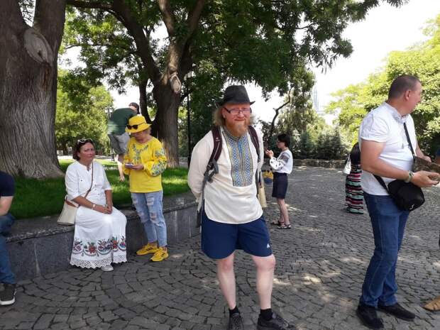 Итак, полторы калеки прошлись «мегамаршем» вышиванок по Одессе. А вони-то было! Сначала свой «мегамарш» они должны были провести в мае — помните, когда чета Зеленских вырядилась в косоворотки? Но перенесли якобы из-за ковида — мол, карантинные меры ослабят, и мы как соберем в центре Одессы целый миллион, как жахнем!