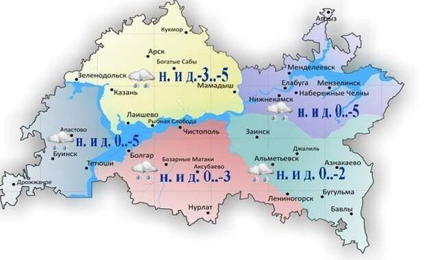 По прогнозу Гидрометцентра Татарстана, в четверг, 24 ноября, ожидается облачная погода — осадки в виде снега, мокрого снега и ледяного дождя. В отдельных районах — гололед и туман. Ветер северо-восточный, восточный умеренный. Днем синоптики прогнозируют от 0 ˚C до –5 ˚C. В Казани температура воздуха составит от –3 ˚C до –5 °С.