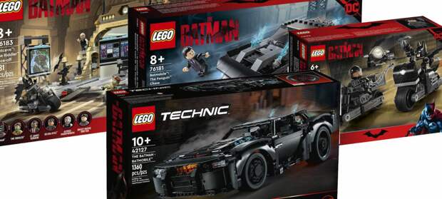 Во время мероприятия Walmart Collector Con NYCC 2021 были представлены LEGO-наборы, вдохновленные фильмом "Бэтмен" режиссера Мэтта Ривза с Робертом Паттинсоном в главной роли.На презентации анонсировали четыре набора:Бэтмен с Селиной Кайл (Женщиной-кошкой) на мотоциклах.Экшен набор с Бэтмобилем и Пингвином с необычной пушкой.