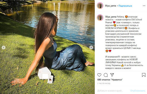На ней темно-синее джинсовое платье с глубоким декольте и пышной юбкой. Образ дополняют стильные очки и роскошные распущенные волосы, которые свободно спадают на плечи красотки. В посте Лилия рассказала о новой сладости, которая может храниться целых 3 месяца. При этом ее муж в комментариях пошутил на тему того, что не может гарантировать такую долгую сохранность лакомства. «Но за сохранность конфет дома дольше трех дней я не отвечаю», - написал Яма. Подписчики его жены не смогли удержаться от комплиментов. «Лилечка, Вы шикарны, волосы очень красивые», - пишут в комментариях. До этого мы писали, что Лилия поделилась с поклонниками кадрами трогательной фотосессии с любимым мужем. Несколько фотографий красотка опубликовала на своей странице в социально сети Инстаграм. Девушка позирует, лежа на коленях у любимого и смотря ему в глаза с улыбкой на лице. На ней – белая блуза, оголяющая плечи, и коричневый в узорах корсет, подчеркивающий идеальную фигуру. Влада для фотосесии нарядили в белую рубашку и светлые брюки, а локацией для съемок выбрано поле с достигшей пшеницей. Мужчина нежно смотрит на красавицу-жену, положив ей одну руку на голову, а другую – на груди. Напомним, роскошная жена Влада Ямы показала семейную идиллию с мужем. Как сообщала Politeka, неугомонный Влад Яма поиграл мускулами на камеру ради жарких кадров: «Просто огонь!». Также Politeka писала, что Влад Яма растрогал украинцев семейным снимком с наследником.