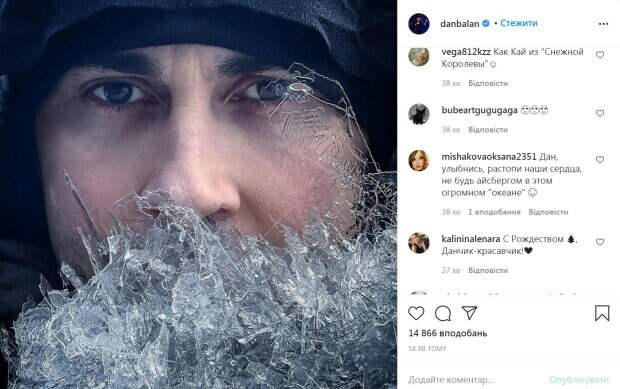 Дан опубликовал свое портретное фото, на котором часть лица скрывает слой тонкого льда. Фотография сделана в холодных тонах. Грустные глаза Балана делают снимок еще более атмосферным. Такой творческий ход восхитил поклонников Дана Балана. В Сети поздравляют артиста с праздником и делают комплименты интересному образу. «Данчик, ты супер!