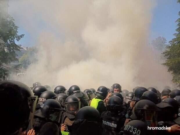Под Офисом Президента Украины в Киеве происходят столкновения активистов и правоохранителей Потасовка вспыхнула в субботу, 14 августа, после того, как полиция не пропустила представителей общественности к ОП. Активисты начали прорываться, бросать дымовые шашки, шины и файеры. Первые кадры появились на "Громадськом".