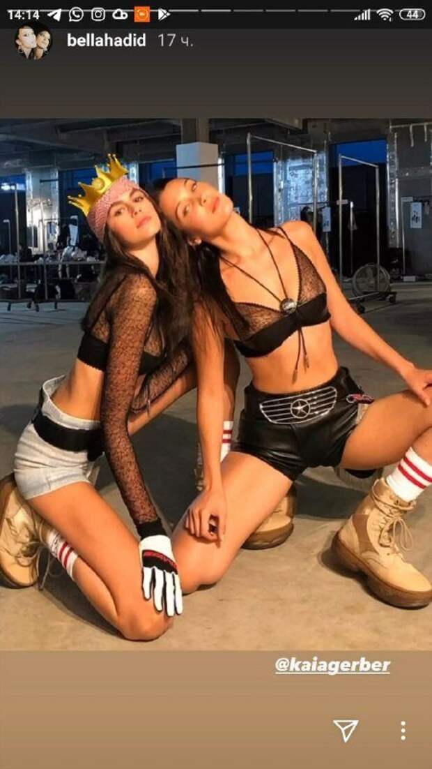 Крохотные лямочки впились в кожу. Длинное украшение на шее прибавило акцента образу. Маленькие кожаные шортики держались на поясе в виде бампера. Модель присела на корточки, раскинув ноги, обутые грубые ботинки. Белла оперлась о плече Кайи. Последняя смотрела в камеру. На ней также была похожа сеточка, но топ с длинными рукавами. Маленькие джинсовые шортики подчеркнули пятую точку Гербер. Белла пририсовала к голове коллеги корону, под которой можно заметить бандану. Пост не собрал массу лайков и комментариев, ведь был обнародован в сториз. Вероятно, красоток засыпали комментариями в личной переписке, ведь они просто совершенные крошки. Напомним, Белла Хадид предстала в соблазнительном наряде, обтянувшем ее стройную фигуру. Топ представлял собой прозрачную сеточку коричневого оттенка, под которым показался лифчик в виде треугольников, обтянувших грудь. Лифчик держался на тончайших бретелях. Ранее сообщалось, что Белла Хадид позировала в черном мини-платье, эффектно изогнувшись ради пикантного кадра. Модель поделилась снимком, на котором позирует в наряде с «бездонным» декольте. «Какой королевский взгляд», «вот это ты богиня», «ты выглядишь отпадно», «обожаю тебя больше всех», - написали пользователи сети. Напомним, знойная Белла Хадид засветила самые аппетитные места в дерзком наряде А еще Politeka писала, что жаркая Белла Хадид сверкнула округлостями в неприличном купальнике Также Politeka сообщала, что мокрая Белла Хадид пошалила на камеру, горячие кадры