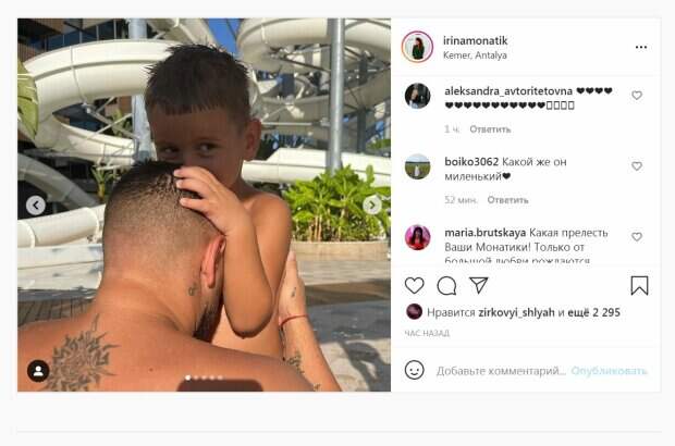 Жена известного украинского певца Димы Монатика (MONATIK), Ирина, показала кадры семейного отдыха Дима Монатик вместе с женой и сыновьями, Даниилом и Платоном, отправились в Турцию, пишет Politeka.net. Супруга певца порадовала кадрами, на которых запечатлела мужа с детьми. Так, можно увидеть ребенка после купания в плавках с изображением динозавра, Монатика, обнимающего сына, Ирину с цветами и другие фото и видео.