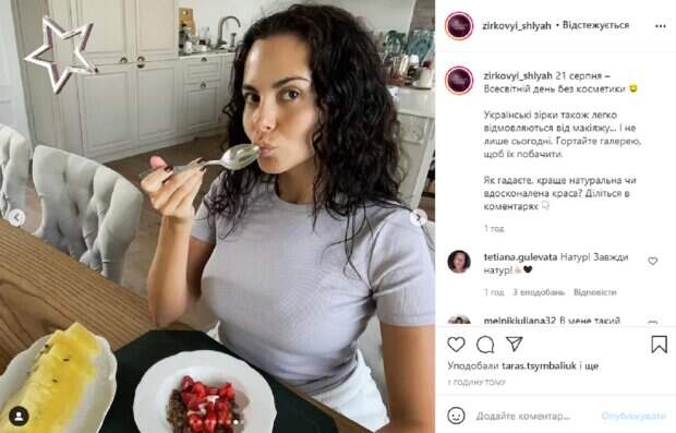 Так, в этой подборке оказались певицы Настя Каменских, Надя Дорофеева, Оля Цибульская, Юлия Санина. Также телеведущие Леся Никитюк и Катя Осадчая, а еще актрисы Ольга Сумская и Анна Кошмал. "Украинские звезды также легко отказываются от макияжа... И не только сегодня. Листайте галерею, чтобы их увидеть. Как думаете, лучше натуральная или усовершенствованная красота? Делитесь в комментариях", - говорится в подписи к публикации. Надо сказать, что пользователи бурно отреагировали на фото звезд без косметики и принялись комментировать публикацию: "Натур! Всегда натур!", "У меня такой день почти постоянно", "Леся и Каменских самые красивые без мейка", "Каменских самая красивая", "Ой, они все красивые без косметики. Наши девочки самые красивые", "Я думала, всемирный день фильтров в Инстаграме", "Цибульская, Никитюк та НК часто без косметики". Напомним, На "Танцях з зірками" раскрыли имена судей, в сети назревает скандал: "Просто издевательство!". Как сообщала Politeka, Настоящие имена MELOVIN'а, Милы Нитич, MamaRika и других звезд всплыли в сети: "Думали, знаете...". Также Politeka писала, что Санина с мужем и подросшим сыном умилили семейной фотосессией на природе: "Эх, моя мечта.. .".