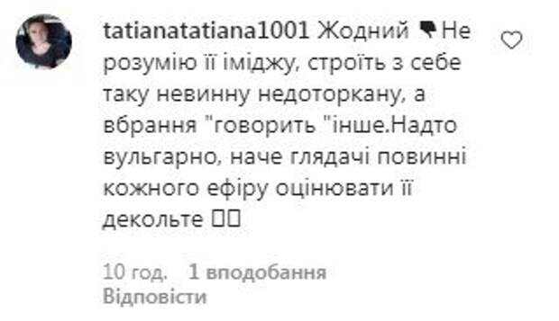 Однако в результате на артистку обрушился шквал критики. «Пора Тине меняться, и прическу и стиль», «Почему ей вечно "зализывают" волос», «Красная помада делает Тину старее и вульгарной», «Зачем грудь постоянно оголять?!», «Все образы, где грудь гуляет сама по себе, выглядят как-то...», «Одно и то же, хочется новых образов», «Хоть оделась уже, но все равно выставляет свои телеса, это стало ее визитной карточкой!», «Не понимаю ее имиджа, строит из себя такую невинную нетронутую, а наряд "говорит" другое. Слишком вульгарно, как зрители должны каждый эфира оценивать ее декольте», - пишут в комментариях. В то же время другие пользователи Сети засыпали Кароль комплиментами: «Тина с каждым эфиром всё красивее и красивее становится», «Всегда красотка», «В чем бы не была, все ровно остаётся божественно красивой», «Непревзойденная в любом образе». Напомним, Тина Кароль в платье с бесстыжими разрезами сразила наповал: "Так и хочется поцеловать" Как сообщала Politeka, что Тина Кароль без макияжа поразила домашним видео с любимым красавчиком: "Сорвала куш" Также Politeka писала, что страстная Кароль довела до мурашек смелыми образами и дерзкими выходками, кадры