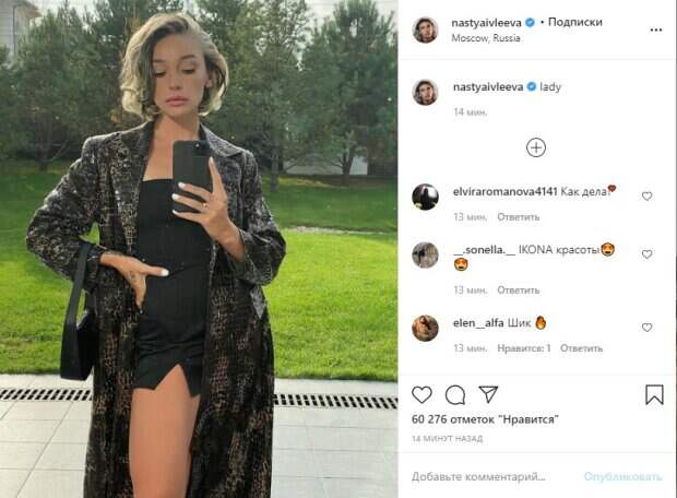 Сверху платья на Насте стильный плащ, губы девушки накрашены, также бросается в глаза маникюр и модная сумочка знаменитости. За очень короткое время новый пост звезды собрал десятки тысяч лайков (только за первые 10 минут почти 57 тысяч), что говорит о невероятной популярности девушки. Стоит напомнить, что у ведущей на сегодняшний день – 6,7 миллионов подписчиков. Однако, фанаты не только ставили "сердечки", также они выражали свои чувства в многочисленных комментариях. "IKONA красоты