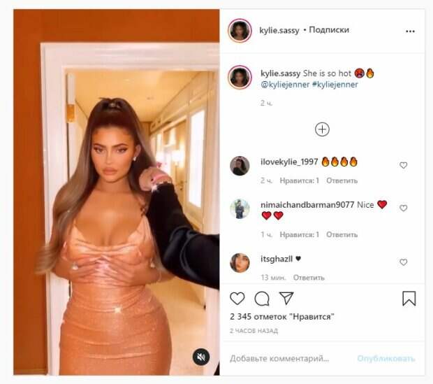 Известная модель Кайли Дженнер показала себя на радость фанатов На кадрах Кайли стояла в блестящем платье, взявшись за свою грудь в большом декольте и без белья. Волосы были собраны в высоких хвост, а образ Дженнер дополнила ярким макияжем. Модель сначала поправила прическу, а потом эффектно прошлась по коридору, демонстрируя фигуру.