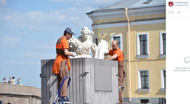 Раскрытие скульптур, помещенных на зимнее время в специальные деревянные футляры, состоялось в Летнем саду Санкт-Петербурга, сообщает пресс-служба Русского музея 25 апреля в соцсети «ВКонтакте». Скульптуры плохо переносят перепады температуры с замерзанием конденсата на поверхности. Поэтому для сохранности они на зиму покрываются хлопковой тканью и накрываются деревянными футлярами, созданными по специальной технологии.