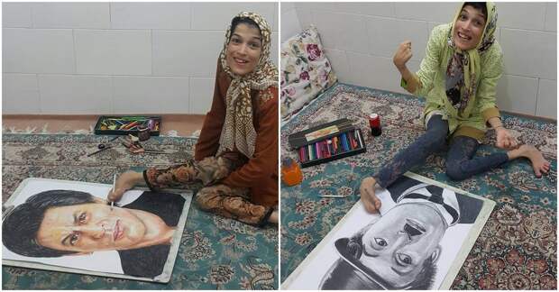 Тело 31-летней Фатимы Хаммами Насрабади на 85 % парализовано, но даже такой страшный недуг не помешал ей стать известной. Фатима рисует с помощью ног фантастические картины и портреты мировых звезд.Конечно, с первого раза не все получалось. Она долго шла к своей цели и не теряла веру в себя. Необычная художница с детства увлекалась живописью.