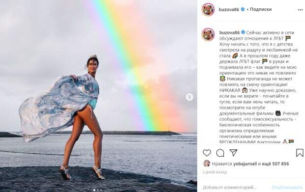 net Гнев экс-мэра столицы обрушился на Ольгу Бузову за ее пост о поддержке прав ЛГБТ-сообществ, а также однополых браков. В своем посте телеведущая раскритиковала то, что многие считают радугу непосредственно символом и пропагандой ЛГБТ-ценностей, как и поддержку прав людей с нетрадиционной ориентацией. «Хочу начать с того, что я с детства смотрела на радугу и лесбиянкой не стала А в прошлом году даже держала ЛГБТ флаг в руках и поднимала его – как видите на мою ориентацию это, никак не повлияло. Никакая пропаганда не может повлиять на смену ориентации! НИКАКАЯ. Уже научно доказано, если вы не верите - почитайте в гугле, если вам лень читать, то посмотрите на ютубе документальные фильмы. Ученые сообщают, что гомосексуальность - биологическая особенность организма определяемая генетическими или иными ВРОЖДЕННЫМИ факторами» - рассказала Бузова. Телеведущая отметила, что, если смотреть на целующихся мужчин или радугу – ориентация не изменится. Бузова призвала «не вестись на ненависть», которую пытаются разжечь в ваших сердца необразованные люди. «Во все века, во все времена во всем мире были представители ЛГБТ и это нормально. Известно, что Петр Чайковский, концертный зал имени которого стоит в центре Москвы, создавший вычислительную машину или так называемый компьютер Алан Тьюринг, прекрасный писатель Оскар Уальд, гордость нашего балета Рудольф Нуриев, Фредди Меркьюри, песни которого мы до сих пор слушаем на повторе, гениальный художник Энди Уорхол, наша любимая героиня из культового сериала «Секс в большом городе» Синтия Никсон, Тим Кук, любитель продукции Apple - знают это имя и много-много других представителей ЛГБТ, которые делают нашу жизнь лучше» - отмечает Бузова. Бузова призналась, что обожает геев, лесбиянок и трансгендеров, которых назвала прекрасными людьми и признала, что если человек хочет вступить в официальный брак с человеком по чистой и искренней любви, то почему бы ему этого не сделать. «Почему мы должны смотреть на печати в паспорте?! Почему мы такие не важные вопросы ставим так высоко? Это всего лишь печать в личном документе гражданина нашей страны! Почему кто-то смеет ущемлять права граждан своей же страны?!» Именно этот пост для мэра столицы Ингушетии стал как красная тряпка для быка – он разразился гневной тирадой в адрес телеведущей и заявил, что Бузова пренебрегает высокими моральными ценностями, которые являются частью жизни всех народов России. «Мне жаль, что я, будучи мэром Магаса, не выдворил ее из столицы нашей любимой Ингушетии, когда она приезжала сюда несколько лет назад. Считаю, что таким людям не место нигде в нашей стране», – отметил Цечоев. Кроме того, Цечоев отметил, что Бузова поддерживает «мировой сатанизм» в самой его «омерзительной форме» и попирает нравственные ценности, являющиеся частью уклада жизни всех народов России. «Это «человек», который поддержал мировой сатанизм в самой омерзительной форме. Наивысшие нравственные ценности, являющиеся частью уклада жизни всех народов России, попираются высказываниями такого рода «деятелей» - рассказал Цечоев. Отметим, что подписчики экс-мэра горячо поддержали его в данном высказывании, заявив, что почти все звезды шоу-бизнеса едва ли не продали душу дьяволу за шанс быть богатыми. «Она и стала богатой потому что продала душу дьяволу, (Джину) лю