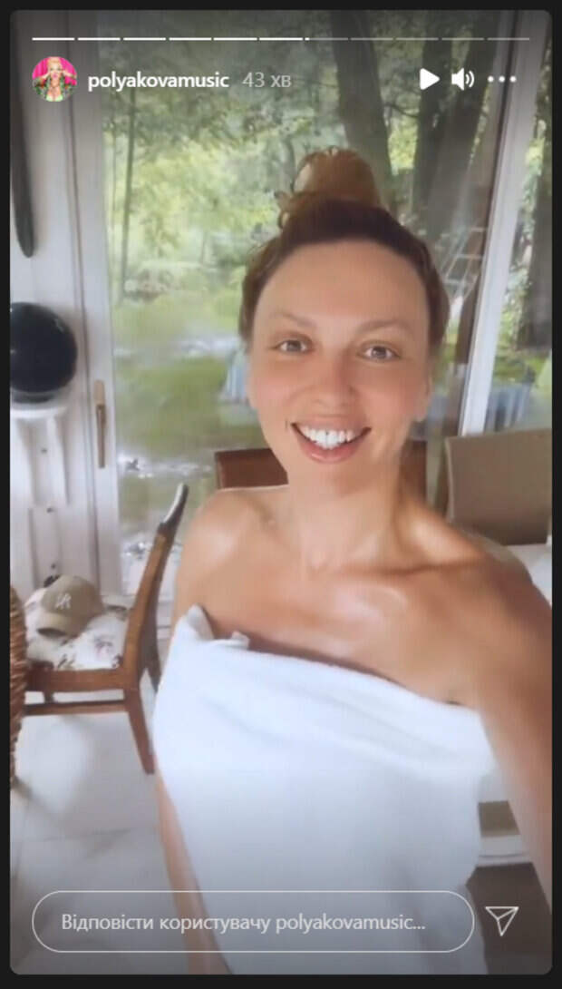 Полякова очень любит делиться моментами из жизни в загородном доме, хвастаясь прелестями домашнего хозяйства. В этот раз Ольга показала, как она парится в бане. Певица поделилась секретами ухода за телом. И тут не обошлось без натуральных ингредиентов. Видеообращение к поклонникам звезда записывала в одном банном полотенце. Она выглядела распаренной и влажной. «Всем привет. У меня сегодня банный день. Я сделала скраб из кофе, соли и козьих сливок. А потом еще взяла эти козьи сливки и намазала себе на тело. Как вы думаете, я не превращаюсь в козу?», - отметила игриво Полякова. Ранее Оля Полякова рассказала, что во время болезни сильно накручивала себя. Певица призналась, что много плакала и жалела себя, а еще конфликтовала с продюсером. Артистке казалось, что всем она нужна только здоровой и работоспособной, а когда она заболела, стала чувствовать себя уязвимой. Напомним, что Полякова с мужем показали, кто еще живет в их роскошном особняке: "Ой, смотри как...". Как сообщала Politeka, Оля Полякова разошлась на кухне «Мастер Шеф», досталось Алине Гросу: «Быстрее!». Также Politeka писала, что Полякова сверкнула загорелыми ножками на личной яхте по дороге домой: пейзаж завораживает.