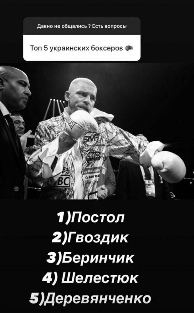 Украинский боксер Иван Редкач составил рейтинг лучших по его мнению украинских боксеров Боксер ответил на вопрос в своем Instagram. На первом месте в этом рейтинге Виктор Постол. Вторую позицию занял экс-чемпион в полутяжелом весе Александр Гвоздик. Тройку лидеров замкнул Денис Беринчик. На 4-5 ступени расположились Тарас Шелестюк и Сергей Деревянченко.