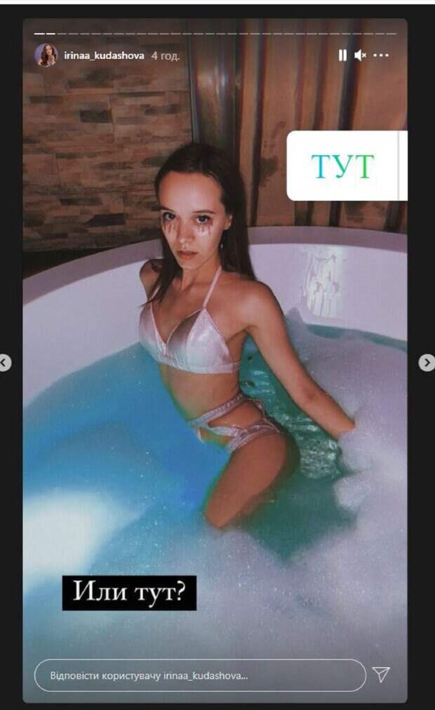 Известная украинская актриса Ирина Кудашова, которая является любимицей Михаила Поплавского и звезда сериала "Школа", показала, как развлекается На фото красотка показалась в бикини, сидя в джакузи. Звезда дополнила образ интересным макияжем, а смотрела Ирина прямо в объектив камеры. Кудашова спрятала все самое пикантное за пеной, а волосы оставила распущенными.