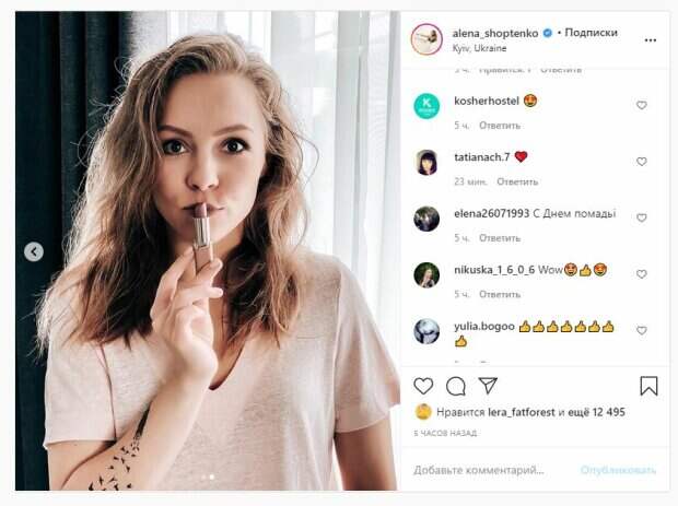 Возможно красавица ее сделала не так давно, судя по свежей краске. Об этом пишет Politeka.net со ссылкой на страничку знаменитости. "Сегодня официальный день помады! И в честь него хочу рассказать вам о наших с ней отношениях", - написала Шоптенко под своей публикацией в Инстаграм. Фанаты поставили почти 13 тысяч лайков и написали комментарии: "Тату появилось?", "Вообще не узнать и даже с татуировкой. Ведь раньше не было, зачем было делать, Алена", "Красная помада это...", "Обожаю", "Ух ты", "Я люблю естественность", "С днем помады". Сообщалось, что участница шоу «Танці з зірками» Алена Шоптенко засветила подтянутые ножки на новом чувственном фото. Так, свой новый пост артистка посвятила личностному росту. «Когда задаёшь себе вопрос, к примеру, о своих ценностях или о том, чего действительно хочешь. То часто игнорируешь ответ самый неудобный», - написала Шоптенко. Она призналась, что раньше думала, что мечтает о головокружительной карьере и активной работе. Напомним, партнерша Олега Винника по "Танцям з зірками" показала интимное фото мужа А еще Politeka писала, что блондинка из «Танців з зірками» отожгла с Олегом Винником, яркие кадры Также Politeka сообщала, что раздетая блондинка из "Танців з зірками" воспользовалась моментом и показала идеальный рельеф
