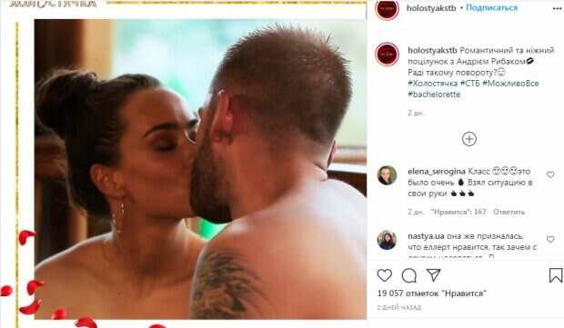 Рады такому повороту?", - говорится в подписи к снимку. Но самое интересное, что на фото не видно одежды ни у Ксении Мишиной, ни у ее нового фаворита, что может наталкивать на определенные мысли. Такой поворот в "Холостячке" пришелся по душе зрителям и поклонникам победительницы шоу "Танці з зірками", из-за чего они завалили публикацию восторженными комментариями. Но были и такие комментаторы, которые не оценили выбор Ксении Мишиной. "Класс, это было очень. Взял ситуацию в свои руки", "Она же призналась, что Эллерт нравится, так зачем с другим целоваться", "Нет , не рада такому повороту", "Ну Адрей бык))) она сопротивлялась как могла", "Эллерт будет очень злой", "У меня чуть сердце не вылезло", "Разочарование", "Рыбак конечно красавчик, но как же Эллерт", "Наконец-то. Мне он симпатизирует", "Как-то все они плохо целуются", "Рыбак, не подведи", "Охренительное свидание. Пока смотрела обзавидовалась 100000000 раз...и Андрюшка тоже ничего", "Очень неожиданно", - написали они под публикацией. Отметим, что "Холостячка" Ксения Мишина до этого целовалась с другим участником шоу - Александром Эллертом. Для телезвезды мужчина подготовил увлекательное свидание - сперва они катались на квадроциклах, а потом танцевали под звездным небом в пустыне. Через время пара смогла уединиться для откровенного разговора и долгожданного поцелуя. Напомним, стало известно о грандиозном возвращении "Холостячки" Мишиной на "Танцы со звездами". Также Politeka сообщала, чем запомнился второй эфир "Холостячки". Как писала Politeka, что разгоряченная "Холостячка" Мишина показала аппетитную фигуру в лучших образах.