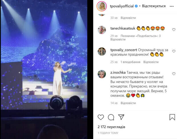 Сказать, что мне понравилось - ничего не сказать! Я в огромнейшем Восторге от Мастерства Потрясающей Аниты и ее Шоу! Все Честно!», - поделилась своими впечатлениями Повалий. По словам артистки, Анита Цой вдохновляет ее своим трудолюбием и смелостью. Поклонники Повалий в комментариях тоже пришли в восторг от увиденного. «Огромный труд за красивым праздником!», «Красиво!!! А знаете, я всё вспоминаю масштабность декораций, света, медиа на вашем концерте в Кремле!», «Красота! Ждём с нетерпением ваш концерт, Таечка и очень надеемся, что будет скоро!», - пишут пользователи сети. Напомним, что Повалий в коротеньком платье напомнила восковую фигуру после пластики: "Смотреть больно". Как сообщала Politeka, Таисию Повалий разнесли за новую внешность: "Вы стали не похожей на себя...". Также Politeka писала, что Повалий забралась на крышу многоэтажки ради нового видео: "Какие тут годы".