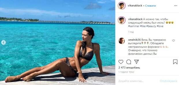 На заднем фоне виднеется лазурное море. Поклонники красотки буквально «засыпали» ее комплиментами. «Можно все, если есть деньги!», «Вы прекрасно выглядите🌹🌹🌹. Обладаете неотразимыми формами», «Викусик ты прелесть!😍», «Фигура просто бомба!💥», «Невероятно красивая женщина», - пишут они. До этого мы рассказывали, что украинская певица, солистка группы «НеАнгелы» Виктория Смеюха показала, как веселится на отдыхе в компании мужчины. Как известно, не так давно Виктория заявляла, что сейчас одинока и не страдает по этому поводу. Также звезда отмечала критерии, по которым мужчина может оказаться ее возлюбленным. Певица отметила, что надежность, верность и спокойствие - главное в ее отношениях в будущем. Напомним, солистка группы «НеАнгелы» показала свои идеальные формы Как сообщала Politeka, Виктория Смеюха показала фигуру в купальнике Также Politeka писала, солистка группы НеАнгелы Виктория появилась в очень откровенном образе
