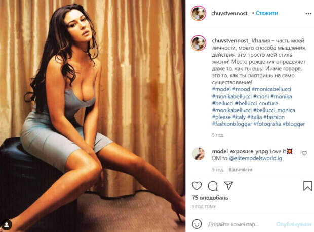 Впрочем, в сети достаточно архивных пикантных фото звезды, на которых есть, чем полюбоваться. На одной из фан-страниц актрисы в Инстаграм опубликовали фото, на котором Моника позировала в платье на бретельках. Женщина едва не выронила бюст из бездонного декольте. Она сидела, немного наклонившись, в результате чего весь ее роскошный бюст был виден на фото. «Италия – часть моей личности, моего способа мышления, действия, это просто мой стиль жизни! Место рождения определяет даже то, как ты ешь! Иначе говоря, это то, как ты смотришь на само существование!», - подписали фото авторы аккаунта, цитируя одно из интервью Моники. В комментариях стали обсуждать неувядающую красоту актрисы. «Королева», «Харизму не спрячешь», «Формы впечатляют», «Моника навсегда», «Моника, ты приходишь ко мне во сне», «Счастье быть с тобой рядом», - пишут пользователи сети. Ранее мы писали, что Моника Беллуччи позировала на пляже в черном нижнем белье. Трусы с высокой посадкой подчеркнули фигуру, но взгляды были прикованы к пышному бюсту. Красотка потянула за бретельки намереваясь снять лифчик. Напомним, что горячая Моника Беллуччи в чулках и корсете лишила сна, устроив урок соблазнения: «Моя королева…». Как сообщала Politeka, безупречная Моника Беллуччи подразнила аппетитными формами в бездонном декольте: «Одна на миллион». Также Politeka писала, что Моника Беллуччи не удержала бюст в тесном корсете, засветив свои пышности: горячие кадры.