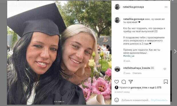 Соответствующие кадры размещены в Инстаграм. В частности, Наташа Горовая опубликаовала пост, в котором назвала маму своим главным вдохновителем. На кадрах предстала Ирина в костюме выпускника, и ее дочь в черном топе и шортиках. "Мам.. ну какая же ты красивая! ❤️ Кто бы мог подумать, что однажды я приду на твой выпускной
