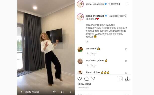 Алена Шоптенко появилась в кадре, наряженная совсем не празднично: просторный белый свитер и черные штаны-клеш с полупрозрачной тканью по бокам. "Друзья, я знаю, что вы ждали, и я очень сегодняшнего дня ждала, подготовила сегодня всю музыку. Я вам обещала "Jingle bells". Я помню, что обещала вам костюм оленя. Знаете, я бы тоже хотела в нем потанцевать но увы, не нашла. Хотела найти хотя бы рога, но рогов тоже, к сожалению, не имею. Очень надеюсь, что вы мое предложение поддержали и тоже празднично оделись", - отметила хореограф во время эфира. После разминки Алена Шоптенко вышла на паркет в комнате своего дома и станцевала квистеп под знаменитую новогоднюю песню - такого на шоу не было ни разу. Во время резких движений ткань разлеталась в стороны, обнажая стройные ноги танцовщицы. "Наш новогодний квикстеп ❤️ Поделились друг с другом праздничным настроением и начали последнюю субботу уходящего года вместе. Сделали это, конечно же, танцуя", - подытожила знаменитость в описании. Пользователи соцсети прокомментировали урок от Шоптенко и не скупились на критику: "Зачем так сексуально стоишь перед камерой?"; "Да можно быстрее все очень понятно и доступно"; "Показать полностью танец, чтобы наглядно было"; "Алена ты очень доступно объясняешь, можно все в танце показывать, со стороны видно, клеить в танце и танцевать, и тогда быстрее музыка поможет, ведь это знаменитый танец". Напомним, Шоптенко из "Танців з зірками" в прозрачной блузе порадовала новогодним настроением у елки А еще Politeka писала, что Шоптенко из "Танців з зірками" страстно прижалась к красавцу и раскрыла свои тайные чувства Также Politeka сообщала, что Шоптенко из "Танців з зірками" затронула за живое эффектным образом