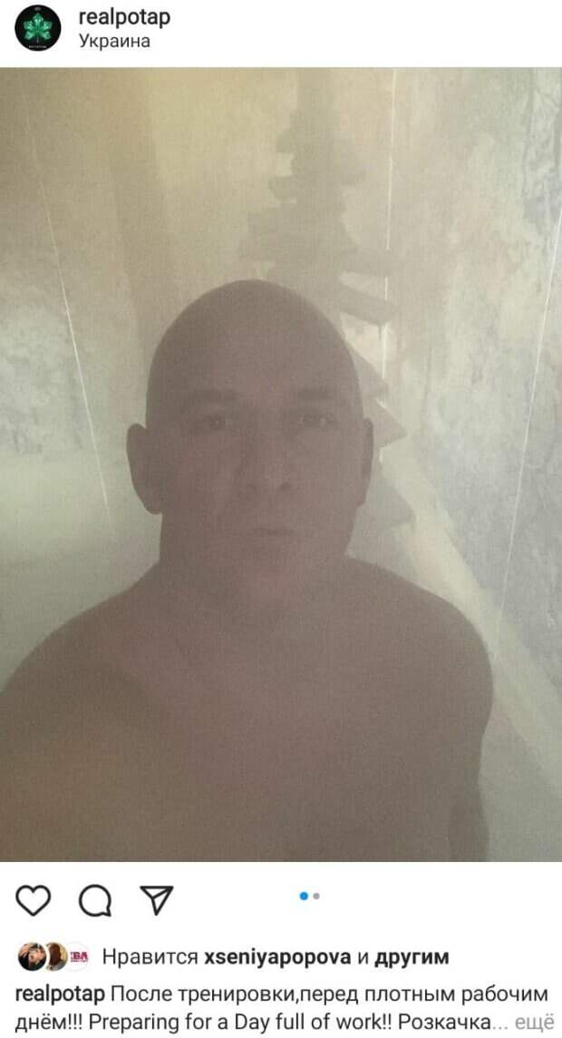 Судя по тому, как запотела камера, можно предположить, что артист зашел в сауну. Для другого фото Потап позировал в бассейне на фоне городских высоток. Примечательно, что от него во все стороны валит пар. "После тренировки, перед плотным рабочим днём!!! Preparing for a Day full of work!! Розкачка перед важким діловим днем!!", - написал исполнитель сразу на трех языках. Туманный образ заинтриговал пользователей соцсети Потапа и вызвал бурное обсуждение в комментариях, даже Ксения Попова из нового состава группы "ВИА Гра" не удержалась от лайка: "А я весь день думаю откуда пар идёт)))"; "Класс! ❤️ Кайф, правда?"; "то ли на фонтамаса то ли на мистера пропера похож здесь)"; "Кайфучешки никто не отменял
