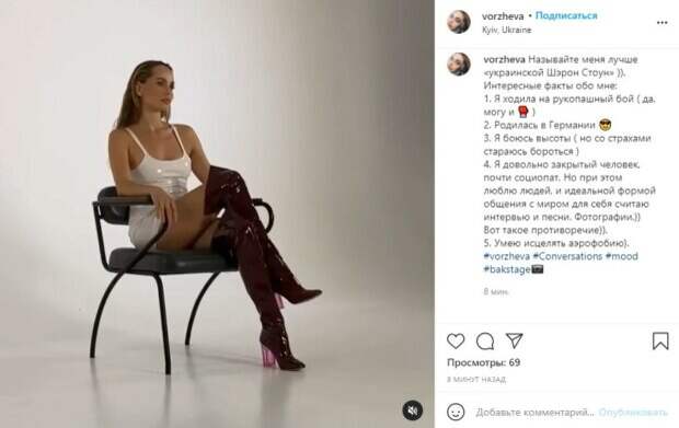 Тем временем в сети девушку по-прежнему называют «украинской версией Джоли». Сама Воржева рассказывала, что ее это не обижает, ведь Анджелина – известная и популярная личность. Тем не менее, подшутить над этим Татьяне недавно удалось очень оригинально. На новой съемке Воржева отличилась идеальным луком из белого латексного платья и лаковых черных ботфортов: «Называйте меня лучше «украинской Шэрон Стоун»» - написала Воржева под кадром и отметила несколько фактов о себе: «1. Я ходила на рукопашный бой (да, могу и