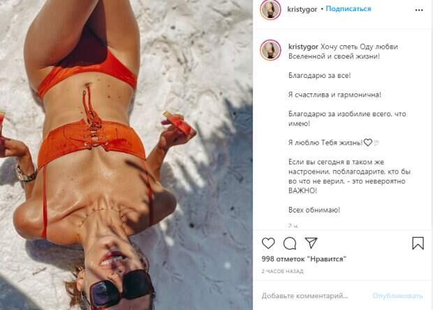 Впрочем, по словам Кристины, она очень довольна и яркие фото в ее профиле в Инстаграм тому подтверждение. На одном из таких фото девушка показала, как веселилась на пляже в модном бикини со шнуровкой на груди ярко-морковного оттенка: «Хочу спеть Оду любви Вселенной и своей жизни! Благодарю за все! Я счастлива и гармонична! Благодарю за изобилие всего, что имею! Я люблю Тебя жизнь!🤍🕊 Если вы сегодня в таком же настроении, поблагодарите, кто бы во что не верил, - это невероятно ВАЖНО!», - рассказала Кристина. Вот что ответили поклонники: «Класс! Такой позитив! 🤗🤗🤗», «Девушка, срочно обращайтесь к врачу. У вас очень много родинок.», «Какие волшебные аффирмации❤️Вдохновляет😍🙏🏻», «Каждому есть за что благодарить Вселенную, что бы не рассказывали пессимистыи если фокусироваться на позитиве, а не на обратном, то жизнь покажется достаточно кайфовой штукой, увлекательным приключением, рекомендую👌😍😍😍! @kristygor как всегда подписываюсь под каждым словом 👍». Не так давно Остапчук откровенно заявил, что с Кристиной Горняк он счастлив и больше не будет скрывать этого. Теперь пара активно делится совместными фото, радует развлекательными роликами и пишет интересные посты в социальной сети Инстаграм. Кристина рассказала в этот раз о своем отдыхе с Владимиром во время карантина. «Отдых в период пандемии!✅⛔️? Касательно себя скажу, что именно этот отдых я ждала как никакой другой. Казалось бы, что мы и так 2 месяца отдыхали, но...Выбрали Турцию, так как выбор невелик. И не пожалели. Давненько не была в Турции, так ещё и в ultra all inclusive A la carte! Это великолепно! Ела, ела, пила, пила, опустошала Мини бар ежедневно, в общем путевку отбила максимально! 😂 Отель о котором я была наслышана разных отзывов, но скажу свой - отелю твёрдая 5! Жили мы в номере «Lagune» Со своим бассейном и видом на море. Но, честно, бассейном воспользовались всего один раз! Номера очень чистые, убирали 2 раза, если не чаще! ▫️Ну а белоснежный песок и чистейшее Эгейское море, думаю, в комментариях не нуждаются!⠀ Однозначно - да, я бы вернулась!! Но ещё хочу подметить, что отель для спокойного отдыха и для отдыха с детками идеален! Если же вы любите пенные дискотеки и шум до 5 утра, то это не сюда!», - рассказала Кристина об отдыхе с Владимиром. Напомним, что любовница Остапчука высказала все, что думает о рухнувшем браке телеведущего: "Я из тех женщин, которые..". Как сообщала Politeka, любовница Остапчука публично высказалась о новых отношениях: "Я никогда не была...". Также Politeka писала, что Осадчая показала фото Остапчука с новой любовницей, гремит скандал.