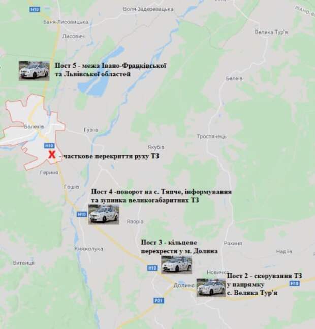 О 9 год місцеві мешканці планують розпочати акцію протесту на вул. Д. Галицького (пішохідний перехід біля магазину «Оксана»). Метою проведення зазначеного заходу є вимога продовження капітального ремонту дорожнього покриття автодороги. З метою інформування водіїв та організації об’їзду буде виставлено 5 постів, а саме: Пост 1 – у м. Калуші, з метою інформування громадян та скерування руху ТЗ у напрямку с. Довгий Войнилів Калуського району; Пост 2 – при в’їзді у м. Долину, біля повороту на с. Рахиня для скерування руху ТЗ у напрямку с. Велика Тур’я Долинського району; Пост 3 – на кільцевому перехресті у м. Долина з метою інформування громадян про обмеження руху у м. Болехів; Пост 4 – біля повороту на с. Тяпче Долинського району з метою інформування громадян та організації зупинки великогабаритних транспортних засобів на узбіччі дороги. Пост 5 – на межі Івано-Франківської та Львівської областей з метою інформування громадян про часткове обмеження руху у м. Болехів Долинського району Івано-Франківської області.