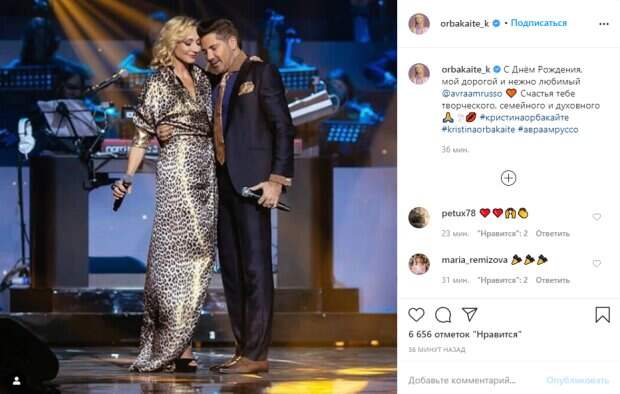 Артистка предстала на фото в длинном платье "хищной" леопардовой расцветки. Кристина приобняла Авраама за плечи, а он ее за талию. "С Днём Рождения, мой дорогой и нежно любимый @avraamrusso 🧡 Счастья тебе творческого, семейного и духовного🙏 🕊💋 #кристинаорбакайте #kristinaorbakaite #авраамруссо", - подписала фото звезда. Пользователи предались ностальгии в комментариях, отмечая, что Кристина и Авраам хорошо вместе смотрятся. "Как мне нравился этот дуэт…😍👏" "Самый лучший дуэт. Кристина с ним супер. Лучшие" "А у меня до сих пор в play листе 2 любимые песни. "Я не отдам тебя никому" и "За любовь которой больше нет" Очень хороший был дуэт, жаль, что больше не записывают песен" "Вы не встречаетесь случайно очень красивая пара" "Красивый дуэт❤️ Кристина рядом с Руссо очень женственна, а он очень галантен😎 " Ранее мы сообщали, Орбакайте потрясла семейным фото, которое опубликовала в Инстаграм. За столом собрались сама Кристина, ее мать Алла Пугачева с мужем Максимом Галкиным, старший сын Никита Пресняков с женой, муж Михаил Земцов, а также младший сын Дени Байсаров. Это довольно редкий случай, когда Орбакайте показывает своего младшего сына на совместном фото. Напомним, что Пугачева на следующий день после похорон Буйнова поразила цветущим видом: "Мне - можно! ". Как сообщала Politeka, подвыпившая Пугачева удивила выходкой: "Зачем вы позорите Аллу?". Также Politeka писала, что Пугачева рассказала, чем в молодости заплатила за свой успех, видео признания: "Вы не простите мне...".