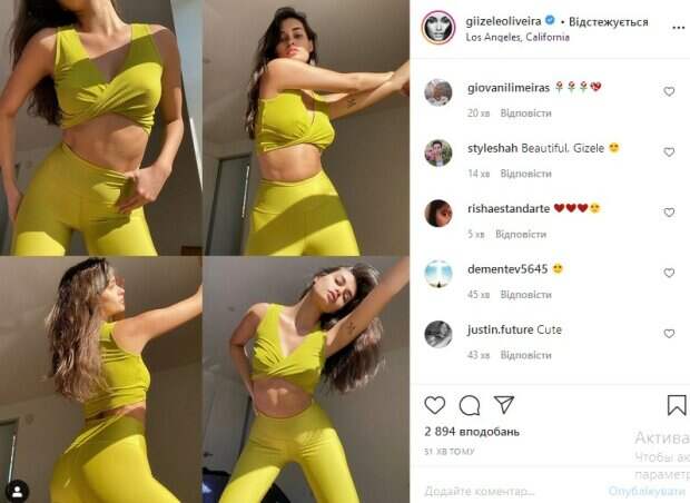 Бразильская супермодель Жизель Оливейра из Victoria’s Secret облачила безупречные формы полоской ткани, сведя поклонников с ума Как рассказывает Politeka, фотографией знаменитость поделилась у себя на странице в Instagram. «Новый шмот», - коротко говорится в сообщении. Уточним, что на опубликованных кадрах Оливейра позирует, облачившись в «лимонный» наряд, который безупречно подчеркивал ее идеальное тело.