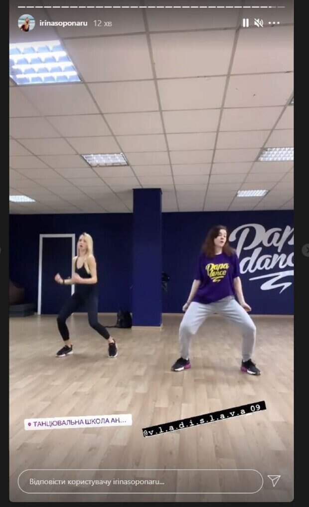 Известная актриса Ирина Сопонару, звезда "Квартал 95", показала, как проводит досуг На фото Ирина показалась в темном костюме с открытой спиной и небольшим декольте. Сопонару дополнила образ удобными кроссовками, а рядом с ней была другая девушка - в штанах и футболке. Красотки зажгли на танцевальной площадке, будоража движениями.
