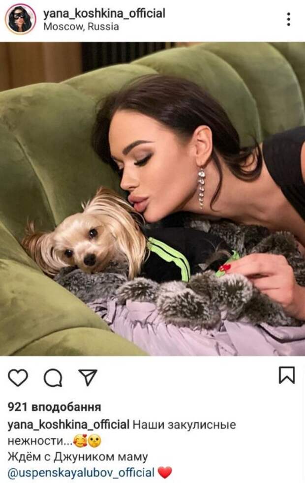На новой фотографии Кошкина наклоняется, чтобы поцеловать маленького милого песика. "Наши закулисные нежности... Ждем с Джуником маму", - написала Кошкина и "тегнула" известную российскую певицу Любовь Успенскую, которая, очевидно, является владелицей собаки. На фото актриса предстала традиционно в очень ярком виде - на ней красивый вечерний макияж и массивные серьги. Фолловеры не сдержали умиления от такого фото, но некоторые и не упустили возможности пошутить. "Говорят, что коты не слишком ладят с собаками...", "Забацаете дуэт?", "Единственный, кто верен", "Сука? Кобель?", "Что-то она не рада", - пишут в комментариях. Ранее сообщалось, что Кошкина рассказала о резком похудении - минус несколько килограммов за пару дней. При этом она намекнула, что причиной потери веса в ее случае является стресс. Напомним, что невеста Харламова задрала ноги в мини-платье и взбудоражила хищным образом: "дикая кошка". Как сообщала Politeka, любовница Харламова пошалила в постели и показала растяжку: "хороша". Также Politeka писала, что Яна Кошкина согрела мужчин экстремальным декольте: "сразу в жар бросило!".
