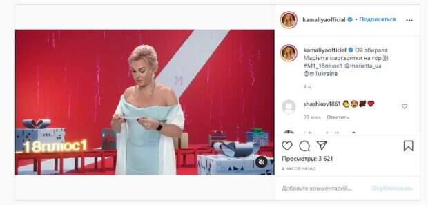 "Ой собирала Мариетта маргаритки на горе", - подписала звезда кадры. Фанаты посмотрели ролик несколько тысяч раз и написали комментарии: "Какая вы женственная, настоящая, не изнуряете себя диетами и не "перекраиваете" до неузнаваемости. ВЫ СУПЕР!", "Камалия, Вы прелесть! Скороговорка сложная", "Красивая тут очень", "Какая вы красивая". Мы писали, что известная украинская певица Камалия показала, как она с детьми готовится к Новому году. Так, в своем Instagram Камалия разместила несколько фото, на которых она позирует со своими двумя детьми под новогодней елкой. Фото появились в субботу, 19 декабря, в День Святого Николая, и она поздравила своих фолловеров с этим праздником. Сообщалось, что самая богатая певица Украины Камалия после тяжелой болезни сразила наповал горячим образом. На фото артистка предстала в роскошном образе роковой соблазнительницы. На ней белое платье с запахом, крупным поясом и свободными рукавами. Главной изюминкой образа стало глубокое декольте певицы, в котором видно даже очертание ее белья. Напомним, Никитюк подалась в певицы и готовится к дуэту с настоящей звездой А еще Politeka писала, что дочка самой богатой певицы Украины ошарашила выходкой в маминых соцсетях Также Politeka сообщала, что самая богатая певица Украины показала свой "капитал" в прозрачном платье