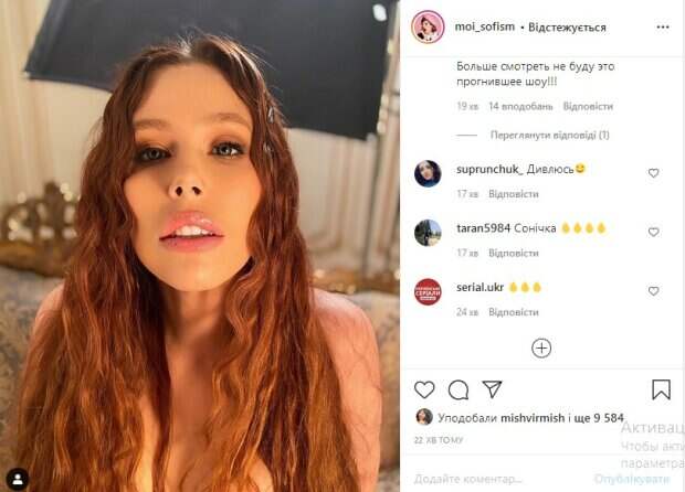 Эффектности снимку добавляет тот факт, что девушка распустила волосы. «Соня! Так нельзя», «нереальная», «красоточка», «боже, Сонечка, как на тебя такую не смотреть!», «невероятная», «красоточка», «идеальная девушка», «это прекрасно», «безупречный вид», - пишут они. До этого мы рассказывали, что фотограф и судья шоу «Супер топ-модель по-украински» Соня Плакидюк похвасталась красотой, примеряв соблазнительное платье «Ну как вам серия?» - коротко говорится в сообщении. Уточним, что на фотографии Плакидюк позирует в образе блондинки, примеряв элегантное платье. Дополнили образ яркий макияж и массивное ожерелье. Не сдержалась от такой красоты и украинская певица Даша Астафьева, которая сравнила образ подруги с культовой Мэрилин Монро: «Пу-пи-ду» - написала она. Напомним, судья "Топ-модель по-украински" с приспущенной рубашкой показала все, на что способна: "Мечта" Как сообщала Politeka, звезда "Топ-модель по-украински" переболела анорексией и показалась с новой внешностью Также Politeka писала, что красотка из "Топ-модель по-украински" похвасталась внушительными формами в наряде в сетку
