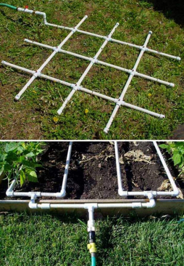 ПВХ-трубы постепенно перестают быть просто материалом для строительства канализации или установки отопления. Теперь у них довольно широкий спектр применения. Мы сегодня собрали 18 идей, как использовать ПВХ-трубы на садовом участке. 1. Система полива Поливалка из пластиковых труб. Функциональная и очень практичная поливалка из пластиковых труб, поможет без труда поддерживать влагу на отдельных грядках.