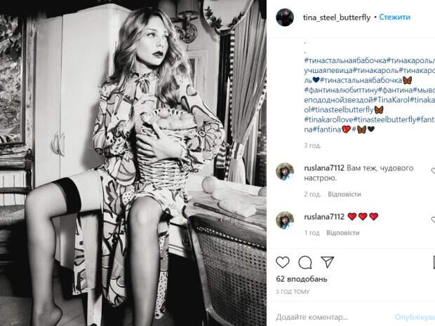 Кароль смотрела в сторону, в руках у нее была корзинка с яйцами. Волосы певицы были распущены, а рот приоткрыт. Фото было опубликовано под хештегом "Стальная бабочка". Именно так фанаты часто называют Кароль. «Доброе утро ❤️ Прекрасного настроения всем! Берегите себя», - подписали фото авторы канала. Ранее мы писали, что Тина Кароль произвела фурор своим видом во время первого эфира шоу «Танці з зірками». Уже второй год подряд Тина ведет этот проект с ведущим Юрием Горбуновым. В этот раз Тина пленила своими прелестями в вечернем платье белого цвета от знаменитого бренда David Koma. Глубокое декольте певицы свело с ума ее поклонников, а мужчин заставило краснеть и прятать глаза. Огоньку образу добавили разрезы на талии. Стоит отметить, что Тине Кароль очень идут откровенные наряды. Они смотрятся на ней соблазнительно, но не пошло. Артистка не стесняется демонстрировать сильные стороны своей фигурки. Напомним, что бесстыжая Кароль произвела фурор на «Танцях з зірками», показавшись в тесном платье без белья: «Как выпирают!». А еще Politeka писала, что Тина Кароль без макияжа и фотошопа обеспокоила внешностью после съемок: "Уставшая сильно". Также Politeka сообщала, что сверх соблазнительное декольте Тины Кароль затмило звезд "Танців з зірками": "Аж разум затуманился".