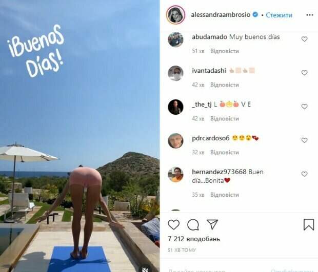 Об этом пишет Politeka.net со ссылкой на страничку знаменитости. "Мексиканское солнце", - написала красотка. Фанаті поставили почти 82 тысячи лайков и написали комментарии: "Правила Мексики !! Наслаждаться много!", "Обожаю это бикини", "Ты выглядишь потрясающе, ты действительно лучшая леди в мире", "Великолепная богиня", "Как всегда красиво", "Совершенно потрясающе и очень красиво", "Удачного отпуска", "Нет, на Хэллоуин костюм не нужен !!!", "Лучшие бразильские красоты", "ступни и пальцы ног слишком сильны", "Вы прекрасны, надеюсь, мы встретимся, если не удачи". Сообщалось, что легендарная модель и звезда бренда Victoria’s Secret Алессандра Амбросио впечатлила формами, обтянув их облегающим нарядом. «Буэнос диас!» - коротко говорится в сообщении. Уточним, что на опубликованных кадрах Амбросио позирует лежа на кровати, демонстрируя безупречные формы. В какой-то момент модель элегантно дефилирует у бассейна, после чего изгибается на камеру во время занятия йогой. Напомним, разморенная звезда Victoria’s Secret в тесной майке показала, кому отдает свою любовь А еще Politeka писала, что счастливая звезда Victoria’s Secret утеплилась в стильный наряд и показала идиллию Также Politeka сообщала, что идеальная звезда Victoria’s Secret впечатлила раскованностью в малюсеньком бикини