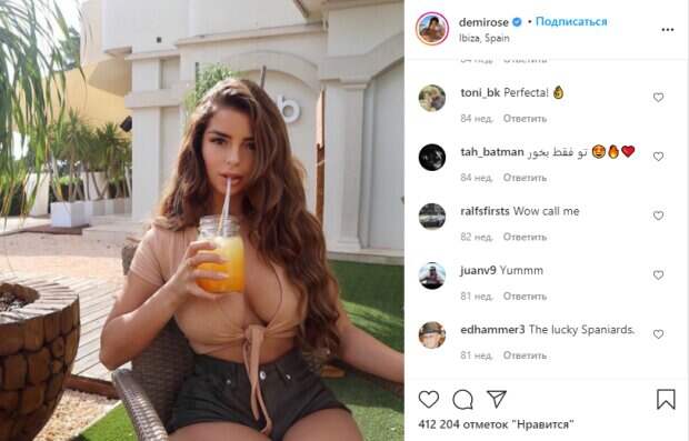 На отдыхе же Деми, как правило, удивляет простыми образами без лишней вульгарности. Как и ранее, в этот раз Роуз удалось поразить простым пляжным нарядом – фигура знаменитости не оставит равнодушным никого. Роуз позировала в коротких джинсовых шортах темного оттенка и нюдовом топе с еле заметным персиковым оттенком. При этом декольте на нем не оставляет места воображению, ведь вся грудь звезды на виду. Фанаты тут же ответили: «Мммм. Ты выглядишь такой идеальной», «Да, детка. Может любить», «Я тебя люблю», «Вы должны любить сад, не требующий особого ухода», «красотка, красотка, твои цветы просто класс», «дух выбивает этим видом», «топ на миллион», «Апельсиновый сок, ну прекрасно, ты актриса», «девушка, вы очень красивая», «Нельзя без сока», «фрукты всегда в тему». Мы также писали, что Деми покоряет социальные сети благодаря пышным формам и своей любви к фотосессиям в провокационных бикини. Девушка не боится показать лишнее, потому смело надевает едва заметное белье или купальники. В ее профиле в социальной сети Инстаграм довольно много фото, сделанных на природе или же на побережье. Так как Деми нравится баловать себя, девушка также часто посещает курортные зоны и милуется собой у бассейна. На одном из таких фото девушка показала достоинства в «невидимом» купальнике. Дело в том, что она надела бикини с силиконовыми лямками и довольно крошечной тканью. Нижняя часть ее купальника была настолько ничтожной, что ее было почти не заметить за пышными бедрами модели. Напомним, мокрая Деми Роуз показала идеальный "орешек" в белоснежном бикини. Как сообщала Politeka, Деми Роуз не смогла удержать "черешенки" в красном бикини с вырезом. Также Politeka писала, что Деми Роуз покорила размерами своих прелестей, забыв о лифчике