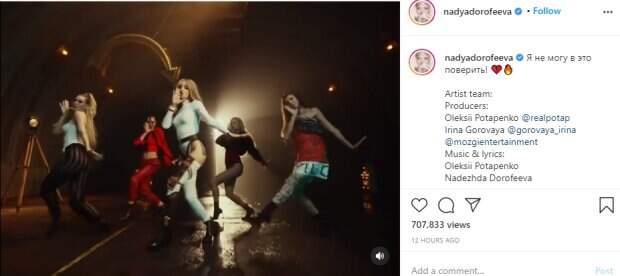 Вначале ролика уже блондинка Надя Дорофеева предстала в необычном белом костюме, который состоит из боди и штанин, больше напоминающих чулки. Такой наряд обнажил изумительные бедра певицы и сделал акцент на ее ягодицах. Фигуру девушки подчеркнули ремни на талии и в зоне бикини, а еще одной изюминкой стали коричневые щитки на одной ноге. Видно, что Надежда прекрасно справляется без Позитива. В другой сцене Дорофеева выступила на мосту в Киеве и станцевала на фоне бигборда со своей фамилией. Тут она выбрала образ в более привычном для себя стиле: белый мешковатый костюм с обнаженным животом - в этом случае фигуру девушки тоже подчеркнул контрастно-черный ремень. Темные волосы исполнительница собрала в два пышных хвоста, в которых можно заметить белые локоны. "Я не могу в это поверить!