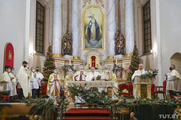 Триумфально вернувшийся в Минск после изгнания властями католический митрополит Тадеуш Кондрусевич провел сразу две рождественских службы. И, если более ранняя на польском языке прошла вполне пристойно, то на вторую (на белорусском) в костел набилось много оппозиционно настроенной молодежи, которая устроила Кондрусевичу долгие овации.