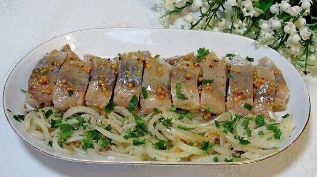 Так селедочку вы еще точно не готовили! Ингредиенты: 2 тушки свежей сельди или замороженной 125 мл рафинированного растительного масла 2 ст. л. хорошей томатной пасты 1 ч. л. горчицы в зернах (можно французской или из пакета семена) 4 головки репчатого лука 60 мл уксуса 6% 1 ст. л. соли с небольшой горкой 1 ч.