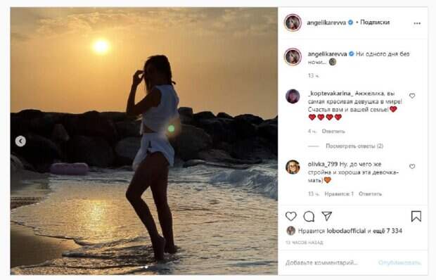 Об этом пишет Politeka.net со ссылкой на страничку знаменитости. "Ни одного дня без ночи...", - написала красотка. Фанаты, включая Светлану Лободу, поставили более 7 тысяч лайков и написали комментарии: "Анжелика, вы самая красивая девушка в мире! Счастья вам и вашей семье!", "Ну, до чего же стройна и хороша эта девочка-мать)", "Какая красота, можно любоваться вечность...", "Просто богиня. Здоровья вашей семье", "Анжелика , вы сама как солнышко, восхищаюсь вами , потрясающе красивая", "я теперь не всегда понимаю, где Алиса, а где Анжелика", "Пусть всегда будет и день ,и ночь!!! День- это Солнце, а ночь- это Луна!! Гармония жизни!!!!". Сообщалось, что российский певец Артур Пирожков обрадовал жену двумя престижными наградами. Артур Пирожков появился на мероприятии в кожаном плаще, черной рубашке, а также серых штанах на ремне с крупной золотистой пряжке. Анжелика выбрала короткое черно-желтое платье из кружевной ткани, изюминкой которого стало откровенное декольте. Напомним, вспотевшая жена Артура Пирожкова показала, что доставляет ей наслаждение по утрам А еще Politeka писала, что эффектная жена Артура Пирожкова похвасталась, как развлекается по вечерам с мужем Также Politeka сообщала, что разгоряченная жена Артура Пирожкова порезвилась на пляже и свела с ума видом в купальнике