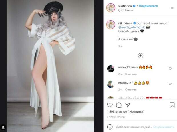 А в родном Кременчуге ее знают, как преподавателя танцев, фитнеса и гимнастики. Как можно заметить, девушка решила предстать в новом образе, которым смогла действительно удивить, ведь он был очень непохожим на ее предыдущие наряды. Даже прическа Катерины была другой. В стиле белоснежной королевы девушка блистала перед объективом коллеги и талантливого фотографа Марты Адамчук. Чтобы подметить характер и личное видение девушки, Марта показала Катерину слегка бунтаркой. Девушка позировала без белья, распахнув наряд практически до талии, а верхняя его часть с прозрачными вставками из сеточки только придала соблазнительности. К слову, прическа – парик с выбеленными локонами – сделал Никитину еще светлее. «Вот такой меня видит marta_adamchuk