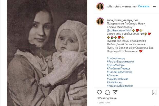 Так, недавно на одной из таких фан-страниц опубликовали милое фото легендарной артистки, на котором она позирует вместе с маленьким сыном Русланом. На черно-белом фото молодая женщина запечатлена с маленьким Русланом Евдокименко на руках. Перед камерой София Михайловна появилась в платье, ее волосы аккуратно уложены, а на лице легкий макияж и очаровательная улыбка. Сын заменитости в светлом вязанном костюме и в чепчике на голове. В подписи к фотографии написали: "Поздравляем Любимую Нашу Софию Михайловну⚡️